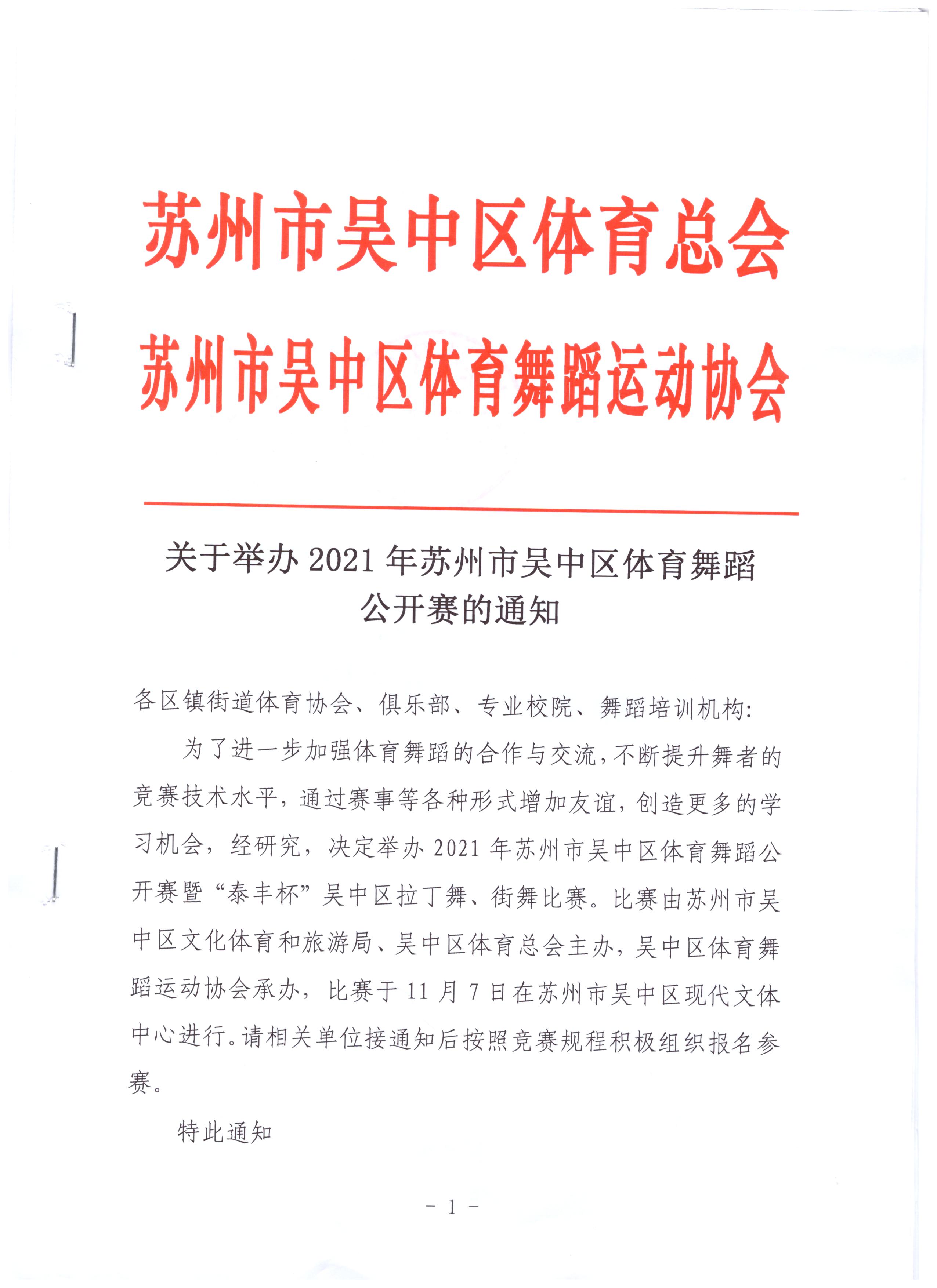 关于举办2021年苏州市吴中区体育舞蹈公开赛的通知