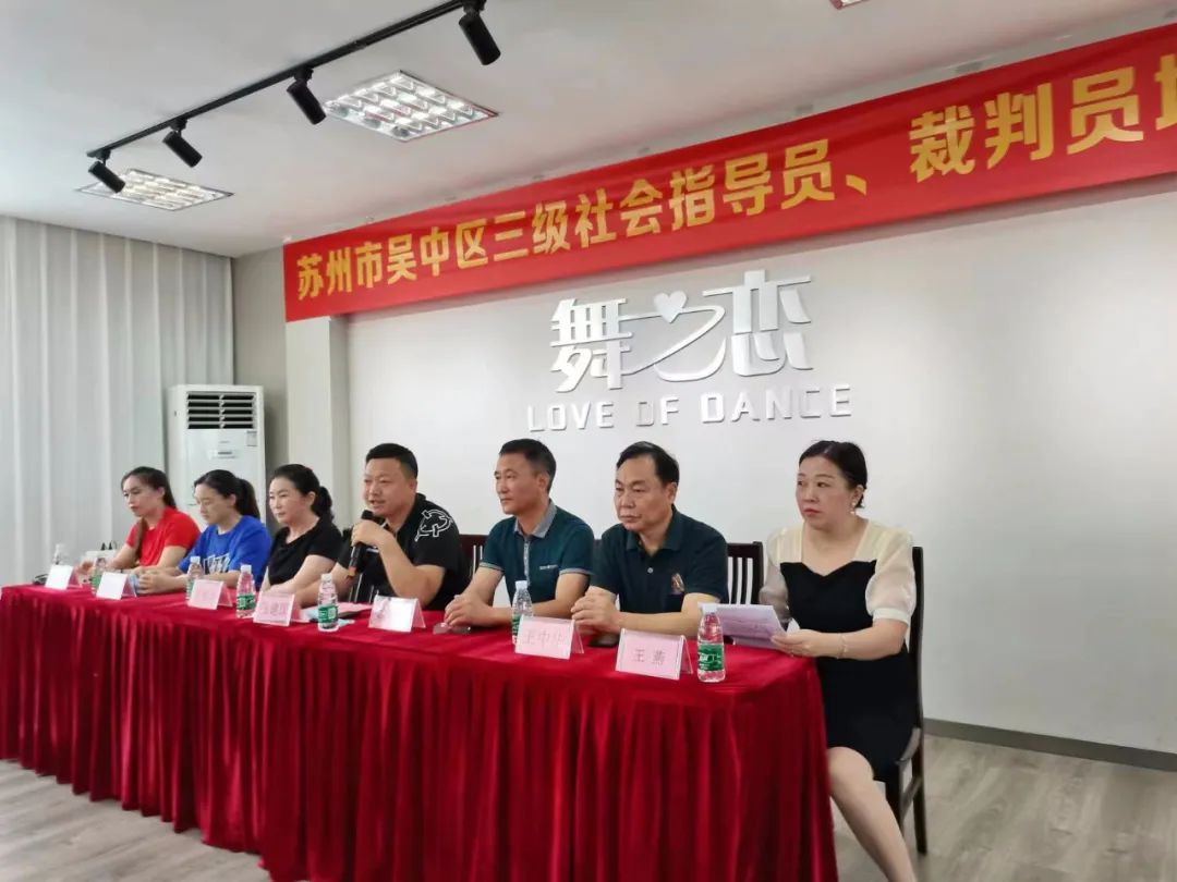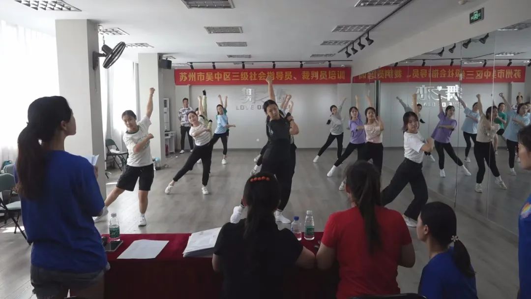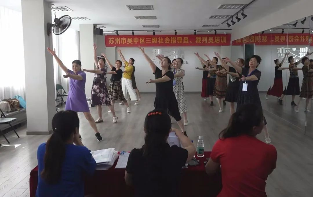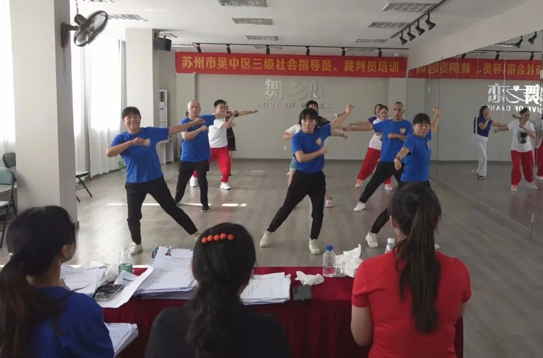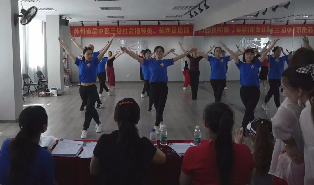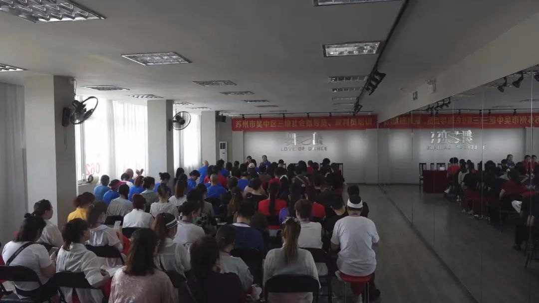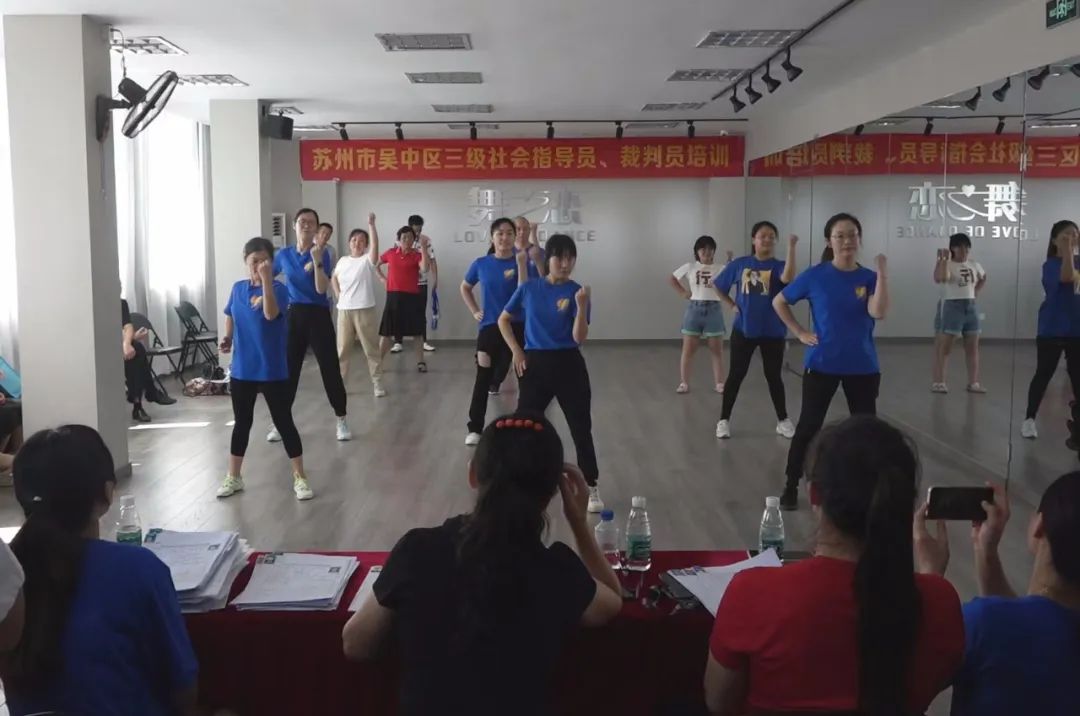 为了进一步适应中国体育舞蹈发展趋势,加强我区体育舞蹈教师队伍及社会体育指导员、裁判员队伍的建设和管理,受苏州市吴中区文化体育和旅游局委托,于2022年7月23日在苏州市吴中区体育舞蹈运动协会舞蹈培训中心举行了吴中区广场舞、健身操三级社会体育指导员、三级裁判员的培训活动。