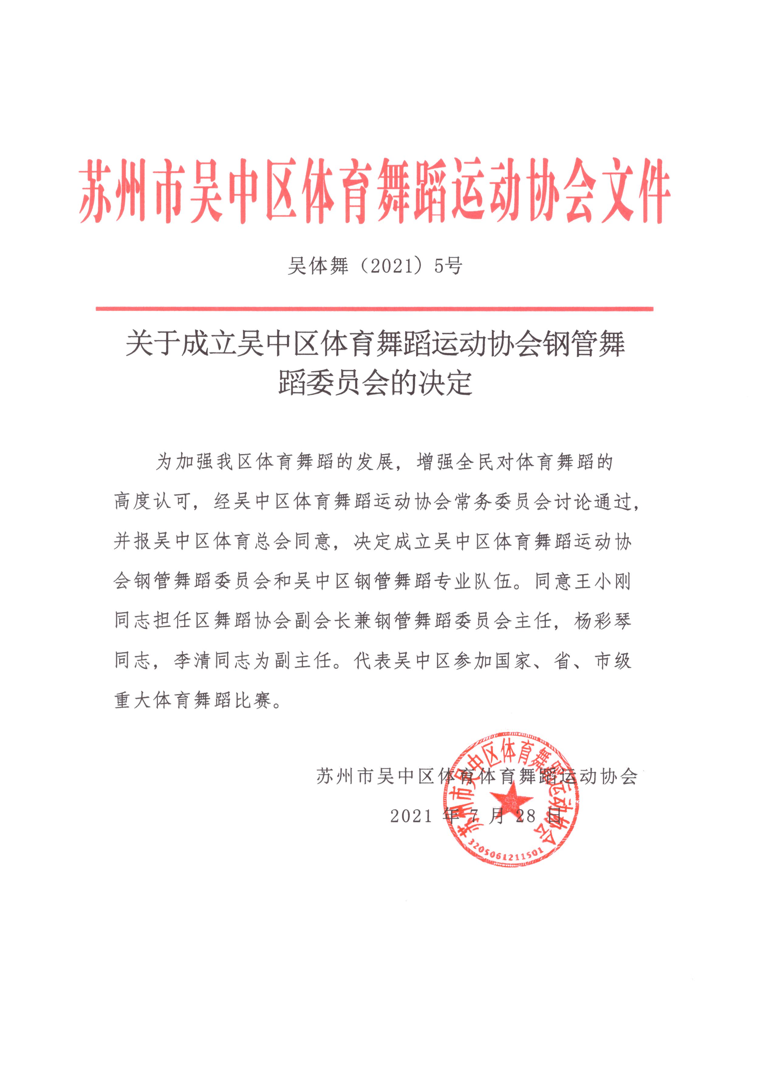 秋风送爽,丹桂飘香,2021年9月3日下午,在美丽的金鸡湖畔,苏州市吴中区体育舞蹈运动协会钢管舞蹈委员会成立仪式在苏州中心苏州华翎企业管理集团有限公司总部隆重举行。